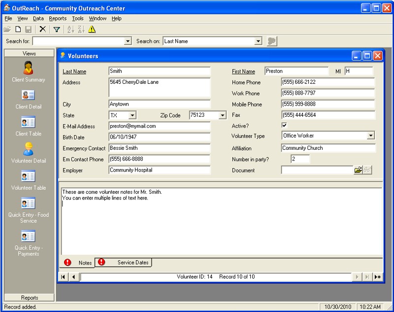- Store demographic information on clients that you serve: name, address, phone, marital status, birth date, ethnic origin, social security number, drivers license number, education level, housing type, and employment information.